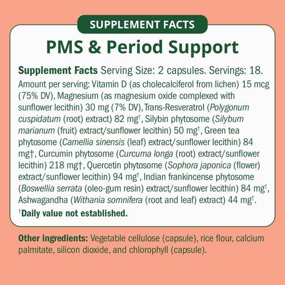 - DOCTOR FORMULATED: Powered by nine antioxidant-rich plants and minerals clinically studied to help with menstrual symptoms: Ashwagandha, Boswellia, Curcumin, Green Tea Catechins (caffeine-free), Magnesium, Quercetin, Resveratrol, Silymarin, and Vitamin D3*