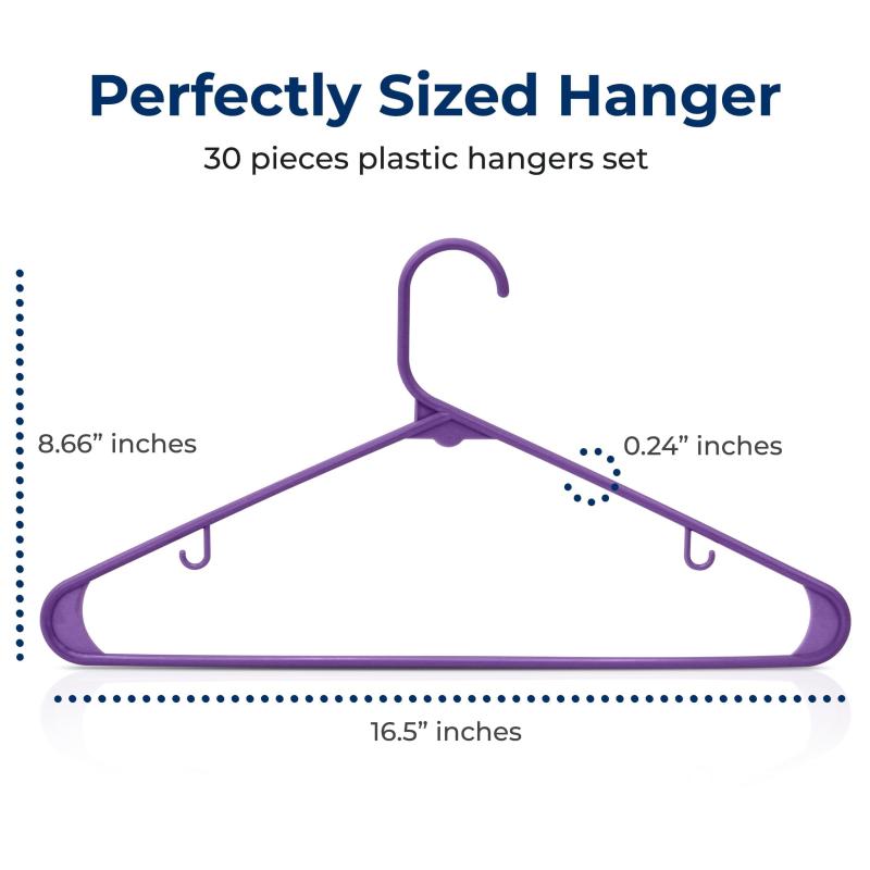 SereneLife 30 Pack Plastic Clothes Hangers Non-Slip, Heavy Duty Adult Coat Hanger Set with 360 Swivel Hook Slim, Space-Saving Closet Organizers for Shirts, Pants & Jackets Purple