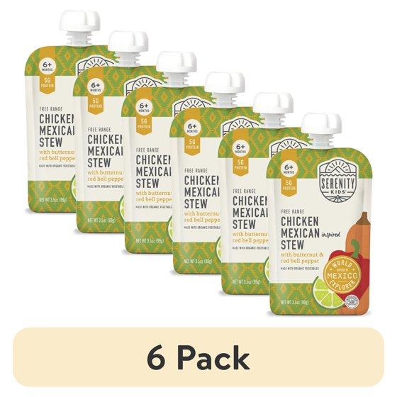 (6 pack) Serenity Kids Free Range Chicken Mexican Inspired Stew Stage 2 Baby Food, Organic Veggies & Spices, 3.5oz Pouch