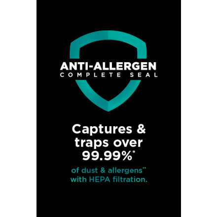 - ANTI-ALLERGEN COMPLETE SEAL: Works with a HEPA filter to trap 99.99% of dust and allergens inside the vacuum, keeping them out of the air you breathe. (Based on ASTM F1977 of particles 0.3 microns or larger. Allergens refers to non-living matter.)