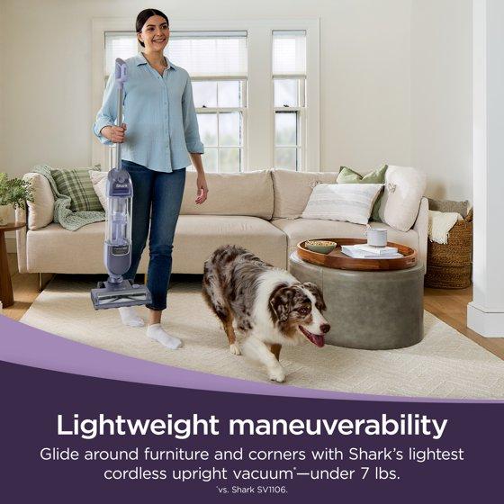- SHARKS LIGHTEST CORDLESS UPRIGHT VACUUM*WEIGHS LESS THAN 7 LBS.: Easily swivel around corners and into tight spaces with lightweight maneuverability. *vs. Shark SV1106.