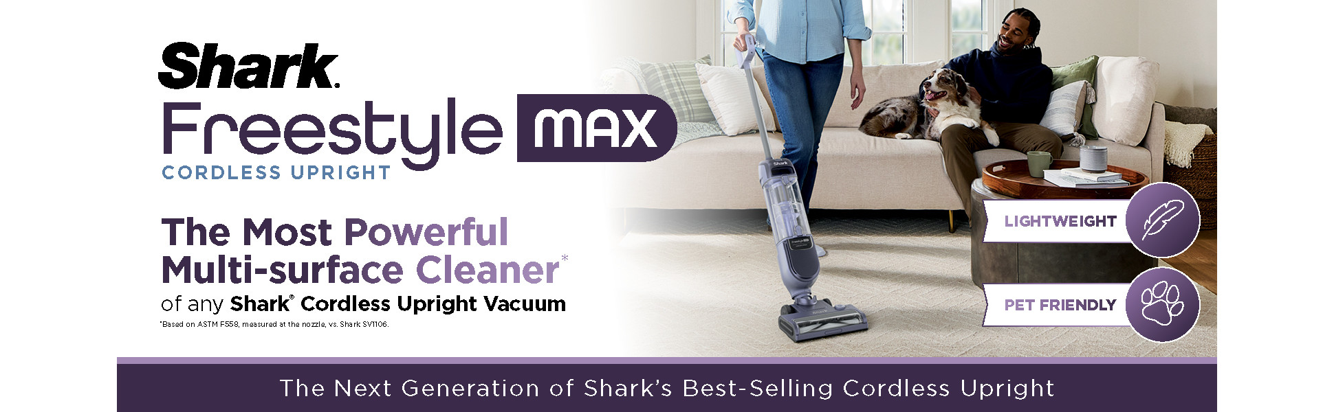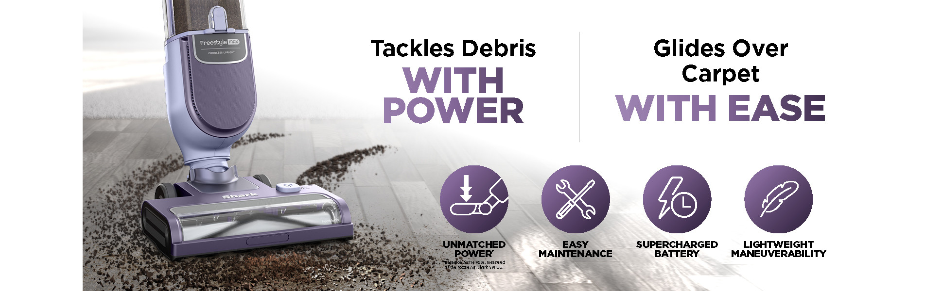 - DESIGNED FOR DAILY LIFE: From quick pickups to everyday messes, Sharks most powerful cordless upright tackles dirt and debris on all surfaces. *Based on ASTM F558, measured at the nozzle, vs. Shark SV1106.