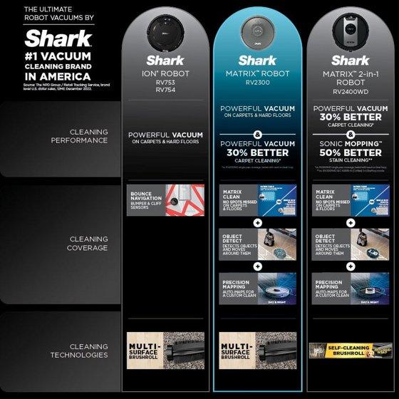 Shark Matrix Robot Vacuum, Carpets & Hard Floors, Precision Home Mapping, Perfect for Pet Hair, Wi-Fi, RV2300