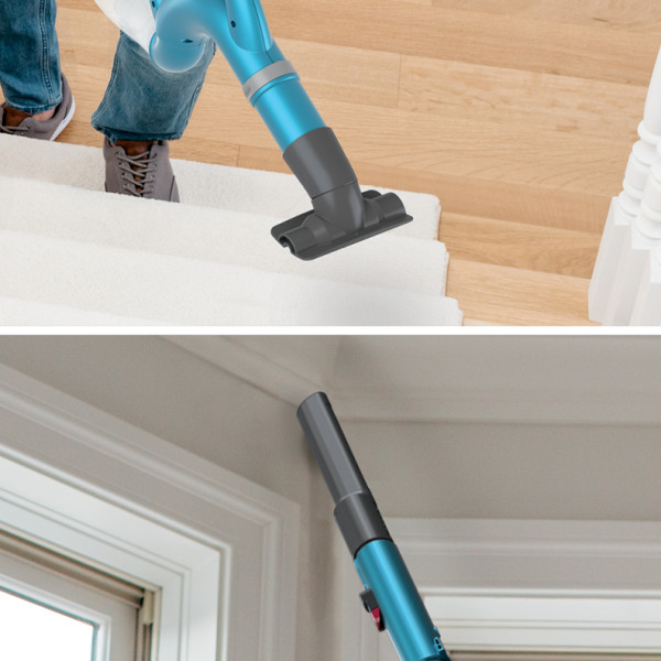 - Powerful suction, lightweight design, and versatile cleaning on hard floors and carpets.