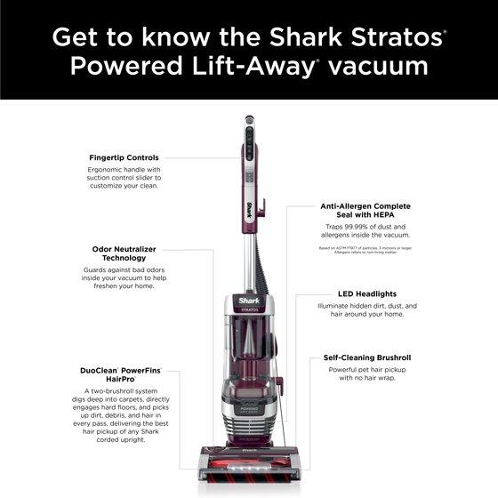 Shark Stratos Upright Vacuum, Pet Friendly, DuoClean PowerFins HairPro, Self-Cleaning Brushroll, Odor Neutralizer Technology, AZ3000 Red Plum