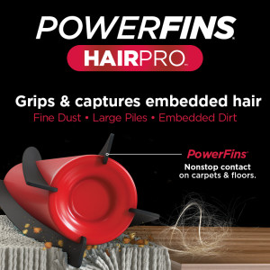 - PowerFins HairPro HZ700, actively grips & captures stubborn long hair, short hair, and pet hair, on carpets & floors.