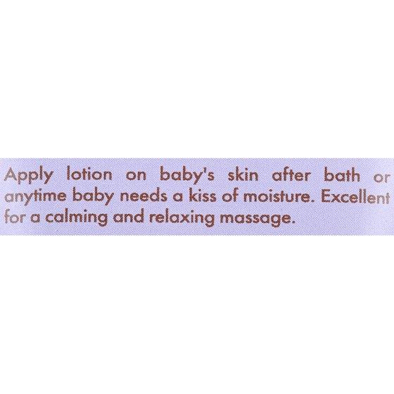 - Apply lotion on baby's skin after bath or anytime baby needs a kiss of moisture. This body cream is excellent for a calming and relaxing massage.