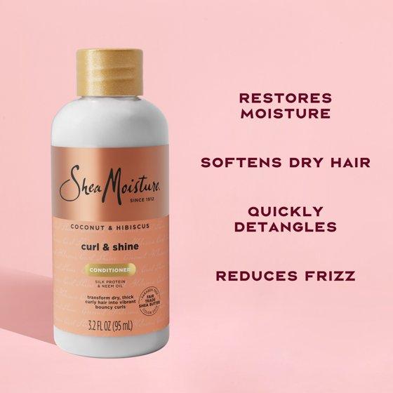 - Transform dry, brittle hair to vibrant, bouncy waves and curls on the go with the travel size SheaMoisture Coconut and Hibiscus Curl & Shine Conditioner