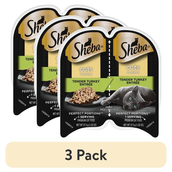 (3 pack) Sheba Perfect Portions Tender Turkey Entree Cuts in Gravy Cat Food, 2.6 oz Twin-Pack Trays