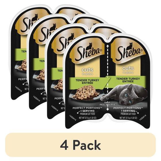 (4 pack) Sheba Perfect Portions Tender Turkey Entree Cuts in Gravy Cat Food, 2.6 oz Twin-Pack Trays