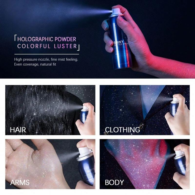 Shiny Glitter Spray, Colorful Luster, 60ml, Body Glitter Spray For Clothes, Hair And Body, Long-Lasting Glitter Makeup, Body Shimmer Spray Rave Accessories For Festival Concert Halloween Party