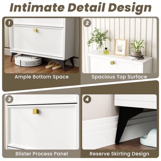 - 【Flip Drawers Shoe Cabinet】The modern freestanding shoe cabinet adopts the design of space-saving flip drawers, which is easy to open and close. Compared with ordinary shoe racks, this narrow shoe cabinet can be placed in a narrow space, keeping your shoes away from dust and preventing pets from biting your shoes.