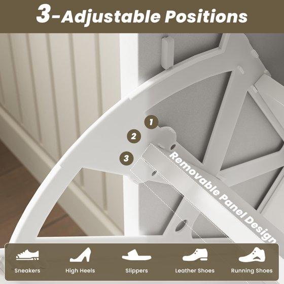 shoe cabinet provides you with enough storage space. 3 spacious flip drawers can hold up to 27 to 36 pairs of shoes to keep them organized and protected from dust. The panel in each compartment can be adjusted or removed to hold different sizes of shoes.