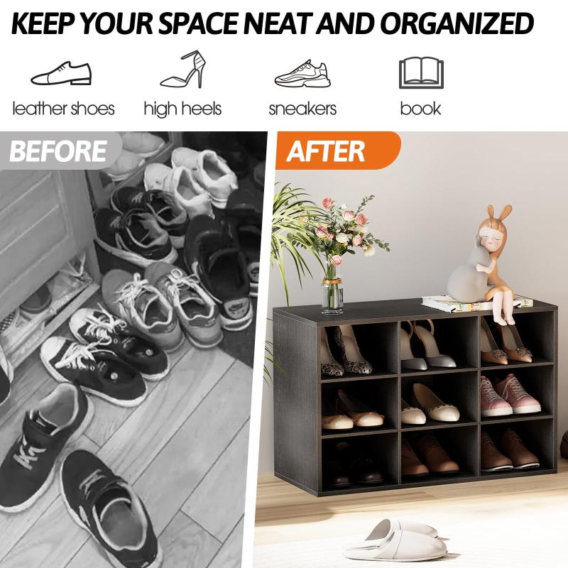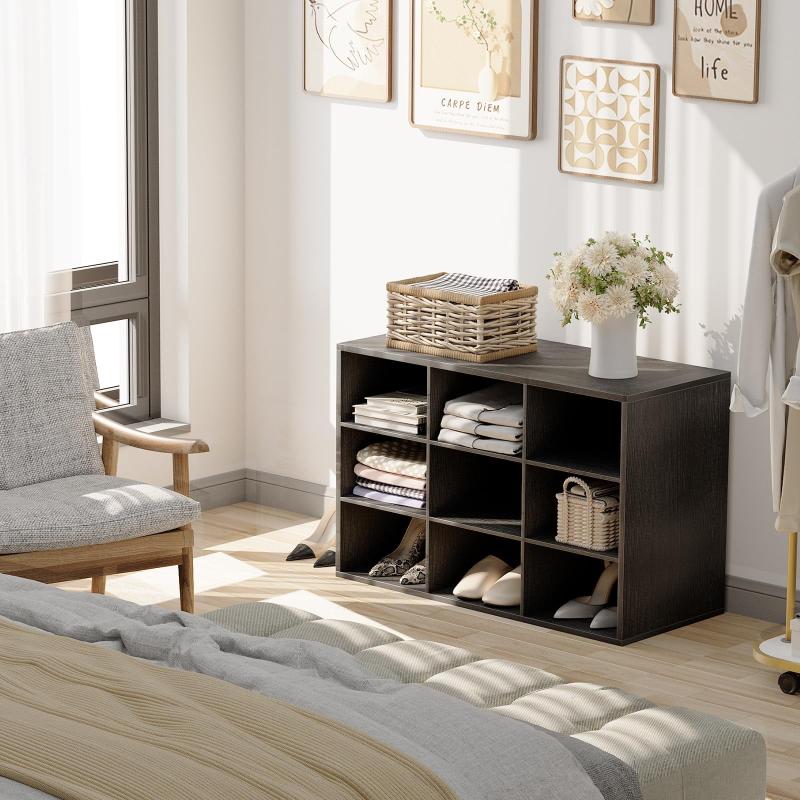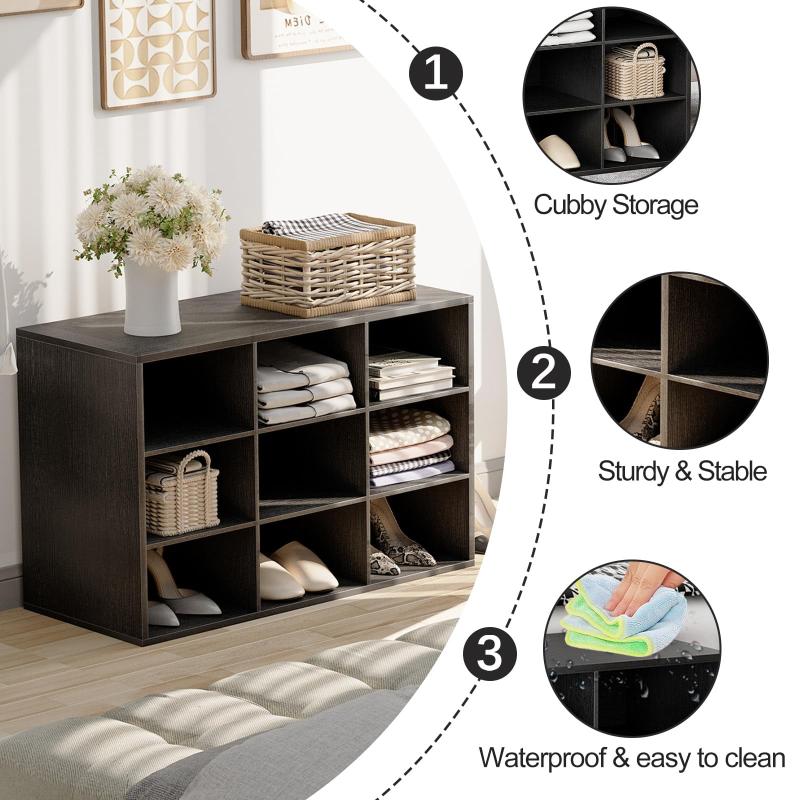 - With 9 cubbies, not only can be used as a shoe cabinet to easily store 9 pairs of shoes. It can also be used as a Clothes storage cabinet at the end of the bed or a living room storage shelf for blankets, books, toys, and more.
