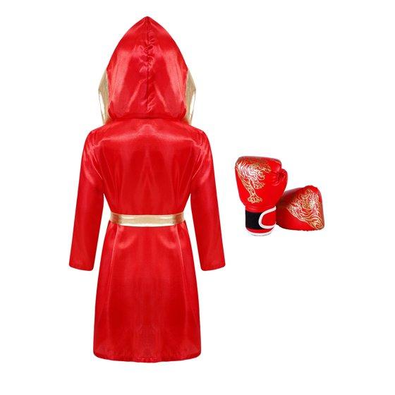 Sholeno Kids Boys Boxing Outfits for Halloween Carnival Hooded Boxing Robe Cloak and Boxer Gloves Set Red 8
