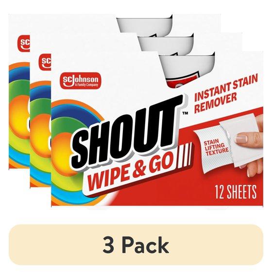 (3 pack) Shout Wipe & Go, Laundry Instant Stain Remover, 12 Wipes