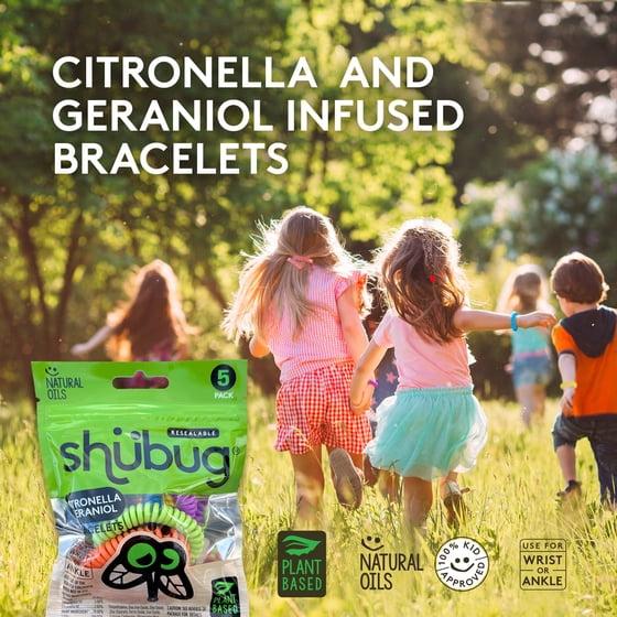 Shubug Citronella and Geraniol Coil Bracelet Band Insect Repellant, Multi-Color, Deet Free, 5 Count