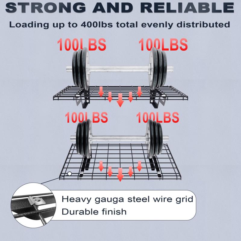 - 400 LBS ULTRA-HEAVY CAPACITY: Built with premium heavy-gauge cold-rolled steel, each garage storage rack supports up to 200 lbs, totaling a 400 lbs load. The robust construction ensures this metal wall shelf remains stable and level under the weight of heavy power tools and automotive parts.