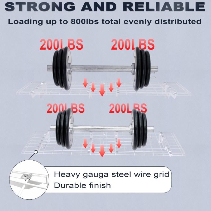 - 800 LBS ULTRA-HEAVY CAPACITY: Built with premium heavy-gauge cold-rolled steel, each garage storage rack supports up to 400 lbs, totaling a massive 800 lbs load. The robust construction ensures this metal wall shelf remains stable and level under the weight of heavy power tools and automotive parts.