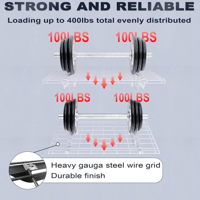 - 400 LBS ULTRA-HEAVY CAPACITY: Built with premium heavy-gauge cold-rolled steel, each garage storage rack supports up to 200 lbs, totaling a 400 lbs load. The robust construction ensures this metal wall shelf remains stable and level under the weight of heavy power tools and automotive parts.