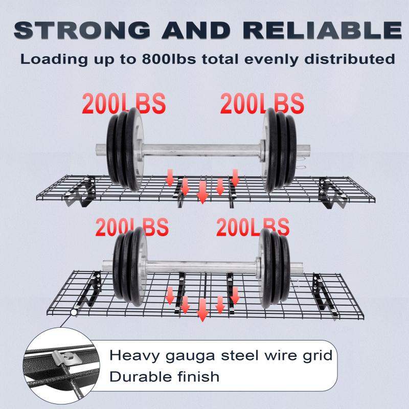 - 800 LBS ULTRA-HEAVY CAPACITY: Built with premium heavy-gauge cold-rolled steel, each garage storage rack supports up to 400 lbs, totaling a massive 800 lbs load. The robust construction ensures this metal wall shelf remains stable and level under the weight of heavy power tools and automotive parts.