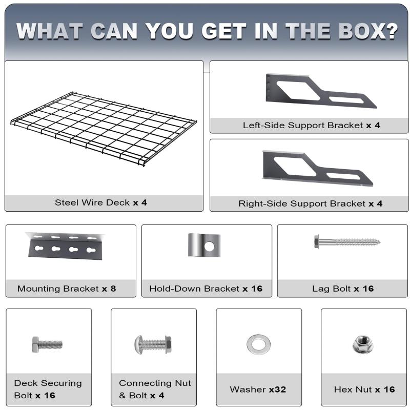- QUICK ONE-PERSON ASSEMBLY: No extra hands required! Our intuitive design allows for a hassle-free, one-person installation. Complete with a durable, rust-resistant finish and all necessary hardware, these wall mounted garage shelves are ready to upgrade your workspace in minutes.