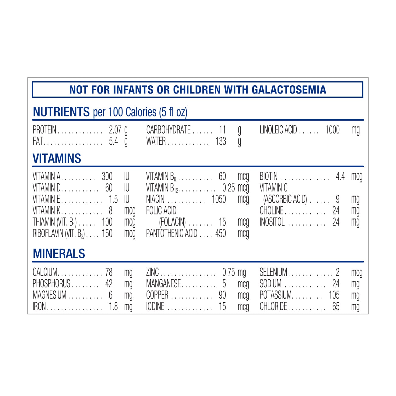 WATER, NONFAT MILK, LACTOSE, HIGH OLEIC SAFFLOWER OIL, SOY OIL, COCONUT OIL, WHEY PROTEIN CONCENTRATE; LESS THAN 0.5% OF: HUMAN MILK OLIGOSACCHARIDES* (2′-FUCOSYLLACTOSE, LACTO-N-TETRAOSE, 3-FUCOSYLLACTOSE, 6′-SIALYLLACTOSE, 3′-SIALYLLACTOSE), SCHIZOCHYTRIUM SP. OIL†, M. ALPINA OIL‡, BETA-CAROTENE, LUTEIN, ASCORBIC ACID, SOY LECITHIN, MONOGLYCERIDES, POTASSIUM CITRATE, CALCIUM CARBONATE, POTASSIUM CHLORIDE, CARRAGEENAN, FERROUS SULFATE, MAGNESIUM CHLORIDE, CHOLINE CHLORIDE, CHOLINE BITARTRATE, TAURINE, INOSITOL, CALCIUM PHOSPHATE, ZINC SULFATE, POTASSIUM PHOSPHATE, d-ALPHA-TOCOPHERYL ACETATE, NIACINAMIDE, CALCIUM PANTOTHENATE, L-CARNITINE, VITAMIN A PALMITATE, COPPER SULFATE, THIAMINE HYDROCHLORIDE, RIBOFLAVIN, PYRIDOXINE HYDROCHLORIDE, FOLIC ACID, MANGANESE SULFATE, PHYLLOQUINONE, BIOTIN, SODIUM SELENATE, VITAMIN D3, VITAMIN B12, SALT, POTASSIUM IODIDE, POTASSIUM HYDROXIDE, AND NUCLEOTIDES (ADENOSINE 5′-MONOPHOSPHATE, CYTIDINE 5′-MONOPHOSPHATE, DISODIUM GUANOSINE 5′-MONOPHOSPHATE, DISODIUM URIDINE 5′-MONOPHOSPHATE). CONTAINS MILK AND SOY INGREDIENTS.