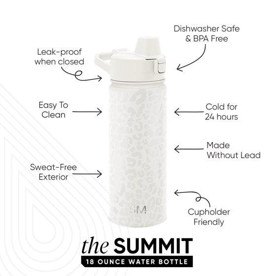 Simple Modern 18 fl oz Insulated Stainless Steel Summit Water Bottle with Silicone Straw Lid | Cream Leopard