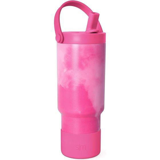 Simple Modern 24 fl oz Insulated Stainless Steel Trek Pivot Tumbler with Straw Lid, Top Handle and Boot|Pink Whimsical Tie Dye