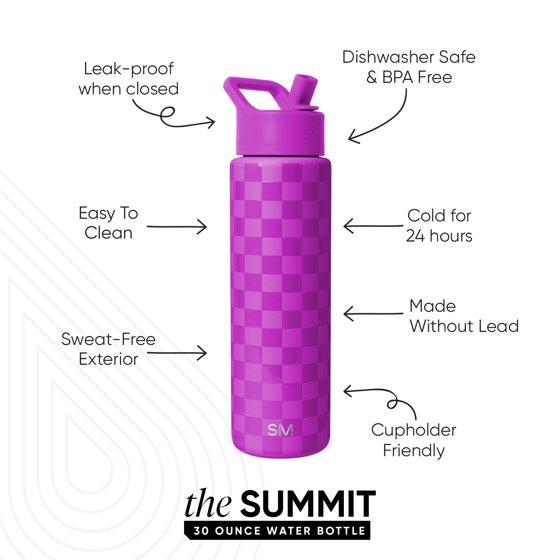 Simple Modern 30 fl oz Insulated Stainless Steel Summit Wide Mouth Water Bottle with Straw Lid | Zinnia Checkmate