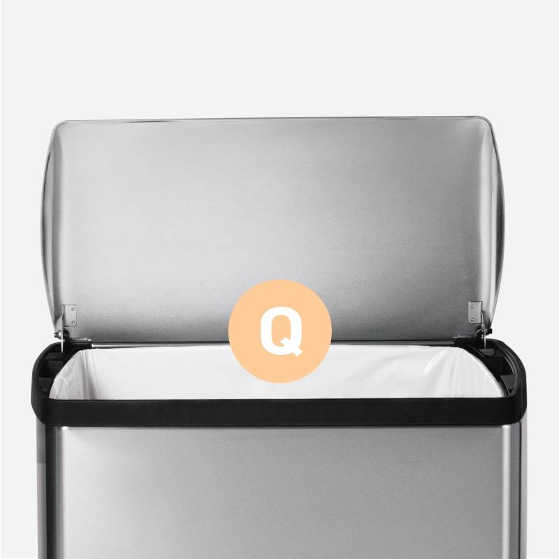 The simplehuman classic rectangular step can has an internal hinge and a space-efficient shape so you can place it directly against the wall and out of the way. The strong steel pedal is designed to last, and the patented lid shox technology ensures a smooth, silent close every time. simplehuman's code Q liner fits this can perfectly â no bunching or slipping for a cleaner trash experience.