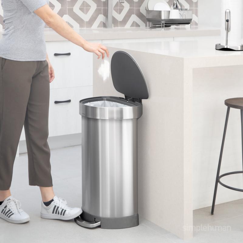 simplehuman 60 Liter / 16 Gallon Semi-Round Hands-Free Kitchen Step Trash Can with Soft-Close Lid, Brushed Stainless Steel