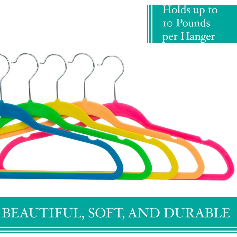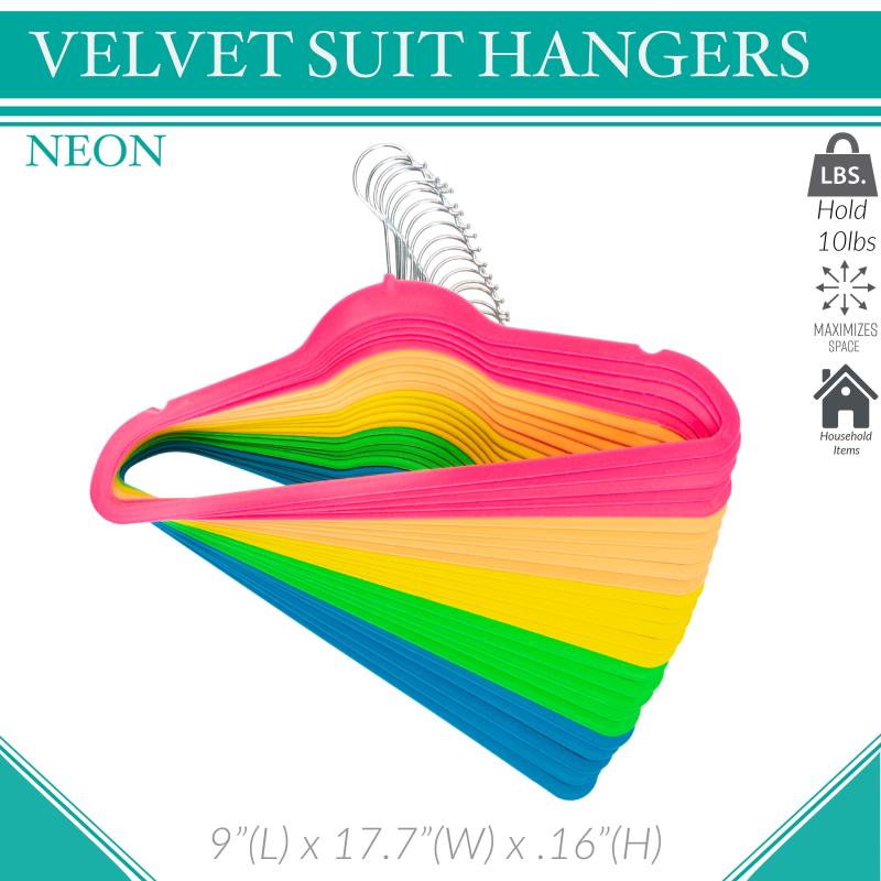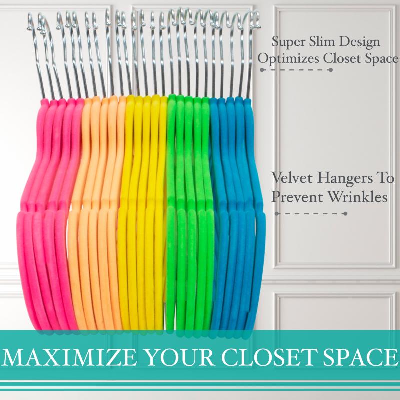 Simplify 25 Pack Slim Velvet Shirt Hangers in Multicolored Neon