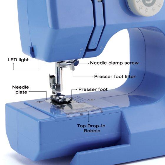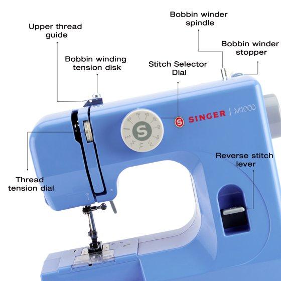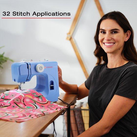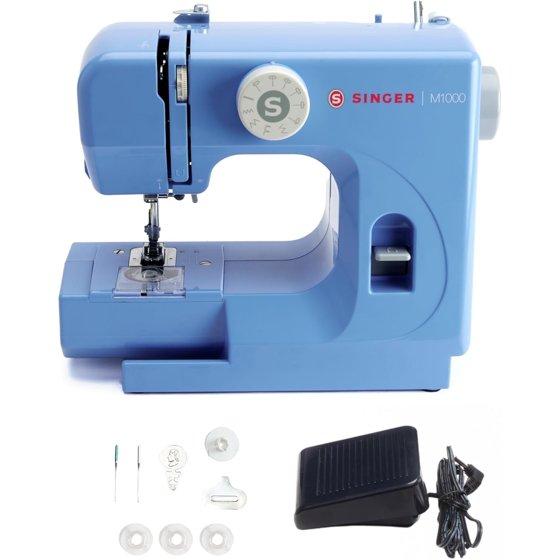 SINGER® M1000 Lightweight & Portable Sewing Machine + Accessories. 4 Built-In Stitches deliver 32 Stitch Applications | LED Light & Top drop-in bobbin for Hems | Great for Mending - Blue