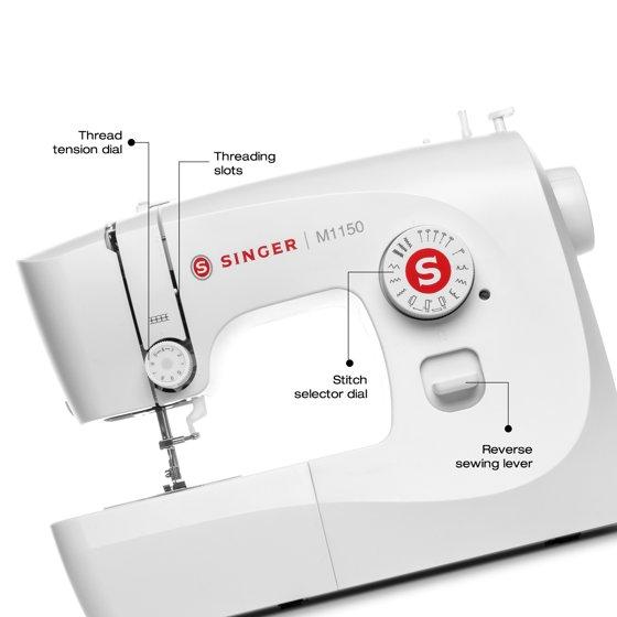 The SINGER® M1150 is lightweight and portable, making it a great choice for taking to sewing class or for sewing in smaller spaces. Thanks to its ease-of-use features such as the top drop-in bobbin, 45 stitch applications, easy stitch selection and preset stitch length and width, beginners and advanced sewists will find this machine easy to use. Sew garments, piece quilts, create crafts or do simple mending – you can do it all!