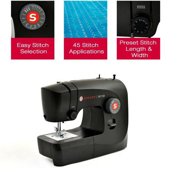 SINGER M1150 Mechanical Sewing Machine With 45 Stitch Applications, LED Light & 1-Step Buttonhole | Smart Choice for Gifting (Black)