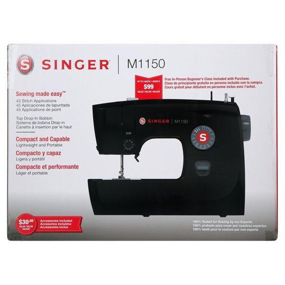 The SINGER® M1150 is lightweight and portable, making it a great choice for taking to sewing class or for sewing in smaller spaces. Thanks to its ease-of-use features such as the top drop-in bobbin, 45 stitch applications, easy stitch selection and preset stitch length and width, beginners and advanced sewists will find this machine easy to use. Sew garments, piece quilts, create crafts or do simple mending – you can do it all!