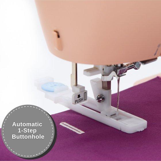 - ONE-STEP BUTTONHOLE FUNCTION: The automatic one-step buttonhole function allows you to create perfect buttonholes in one easy step. Simply place the button in the buttonhole foot, and the SINGER Simple 3337 stitches the buttonhole to the perfect size, offering a professional finish with minimal effort.