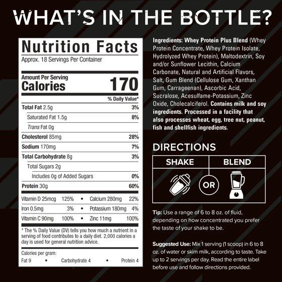 How to Make the Perfect Whey Protein Shake: Shake or BlendTip: Use a range of 6 to 8 oz of fluid, depending on how concentrated you prefer the taste of your shake to be.Mix 1 serving (1 scoop) in 6 to 8 oz of water or skim milk, according to taste. Take up to 2 servings per day. Read the entire label before use and follow directions provided.