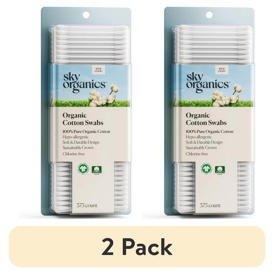 (2 pack) Sky Organics Pure and Organic Cotton Swabs for Sensitive Skin, 375 Count