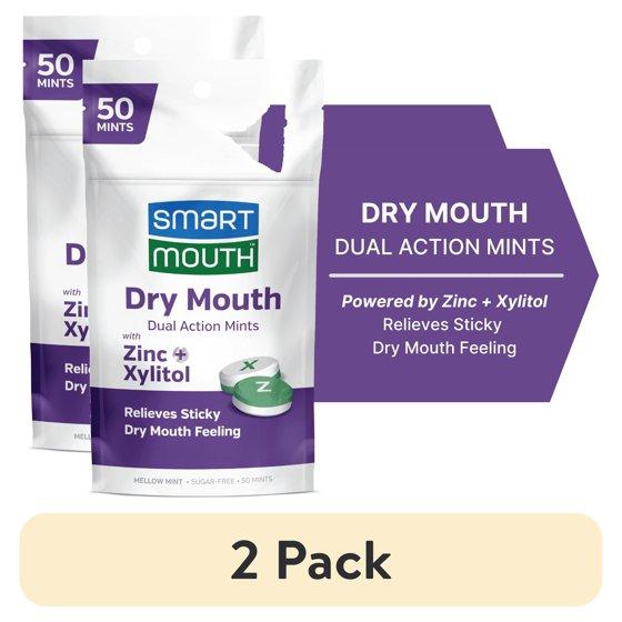 (2 pack) Smart Mouth Dry Mouth Dual Action Mints with Zinc + Xylitol Mellow Mint - 50 Count, Adult