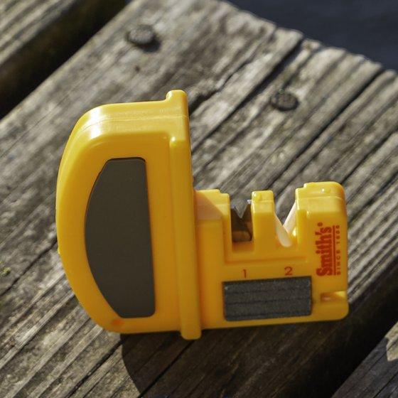 - FISH HOOK SHARPENER – Smith’s Deluxe Fillet Knife & Hook Sharpener features a stone fish hook sharpener with multiple sharpening grooves.
