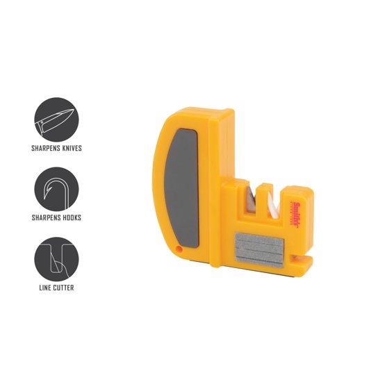 - LINE CUTTER – The sidewall of the sharpener has a convenient line cutter that makes a clean precise cut on your fishing line.