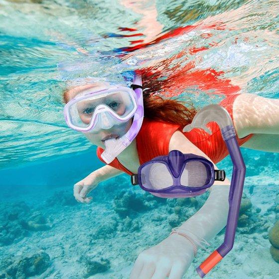 Snorkel and Goggle Set Snorkeling Gear for Kids Children Boys Girls Anti-Fog Mask Scuba Pool Toys Swimming Goggles Pool Summer Beach Accessories Ages 6+ (Purple) Color Varies & CUSTOM Storage Carrier