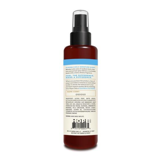 - VEGAN, CRUELTY-FREE NON-AEROSOL, ANTI-HUMIDITY HAIRSPRAY is free from toxic aerosols, parabens, and gluten. Soapbox products are vegan and cruelty free