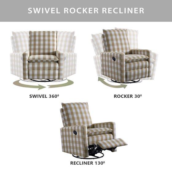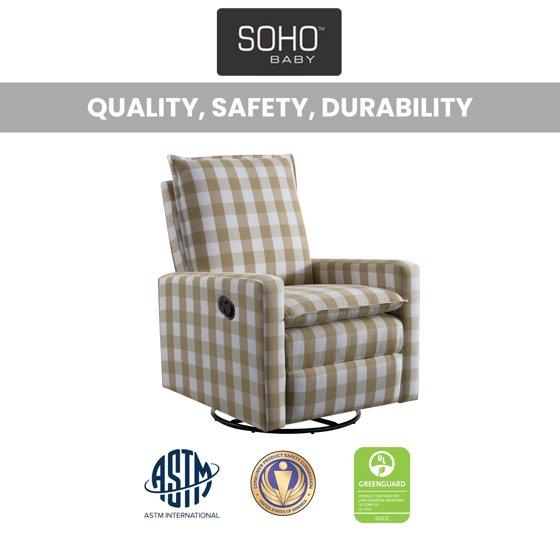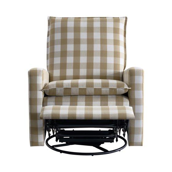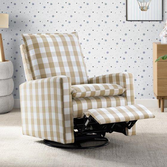 Soho Baby Coventry Upholstered Glider Recliner Rocking Chair 360° Swivel for Nursery and Living Room – Gingham Tan