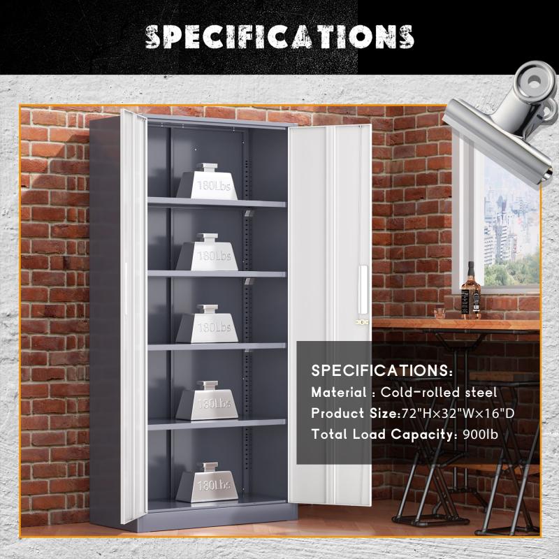 - Large space storage: The upgraded oversized 72 x 32 x 16 inch metal file cabinet, can meet most storage needs. And the lockable steel garage cabinet with two doors comes with four removable shelves to hold different sized items as needed. Besides, each shelf of this metal office cabinet can hold up to 180lbs