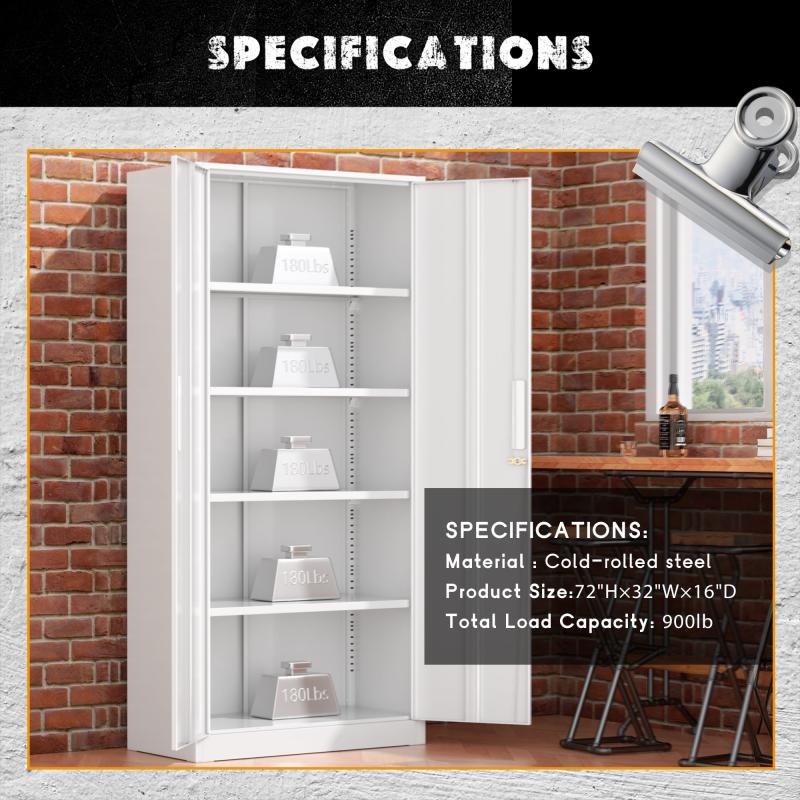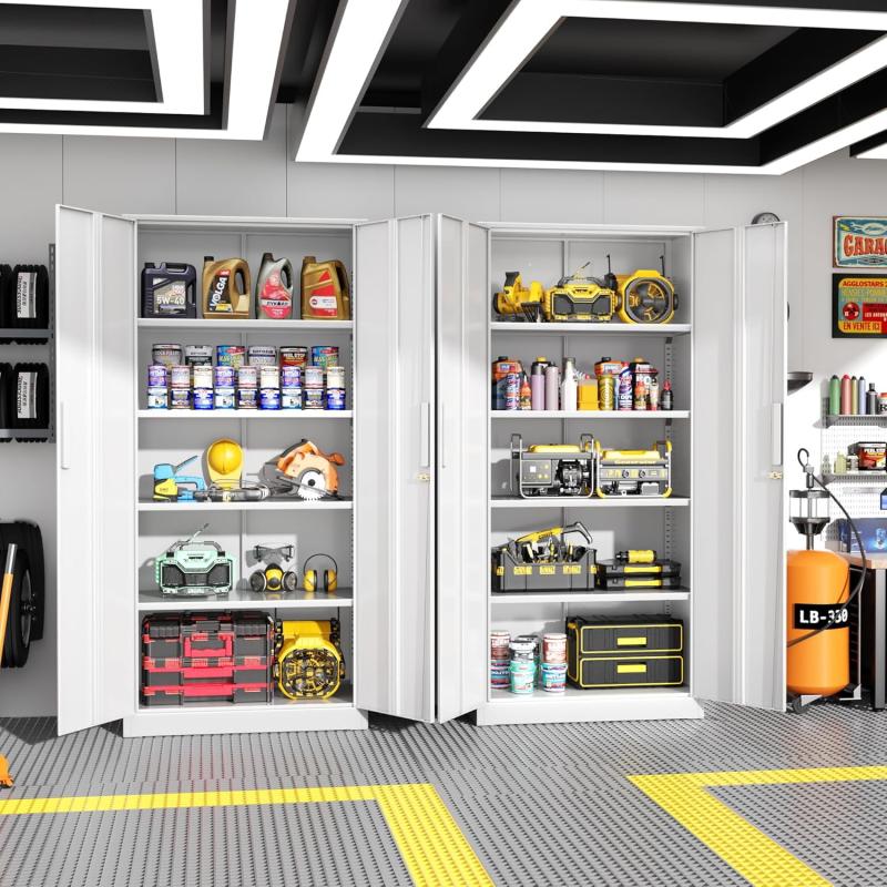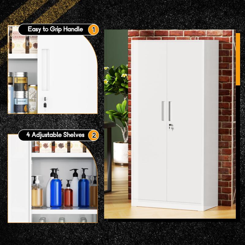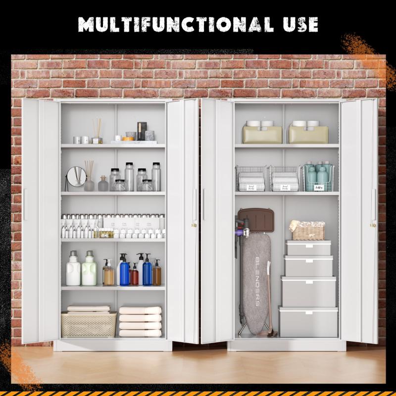 SOLAURA 71" Metal Garage Storage Cabinet with Locking Doors and Adjustable Shelves for Home, Office(White)