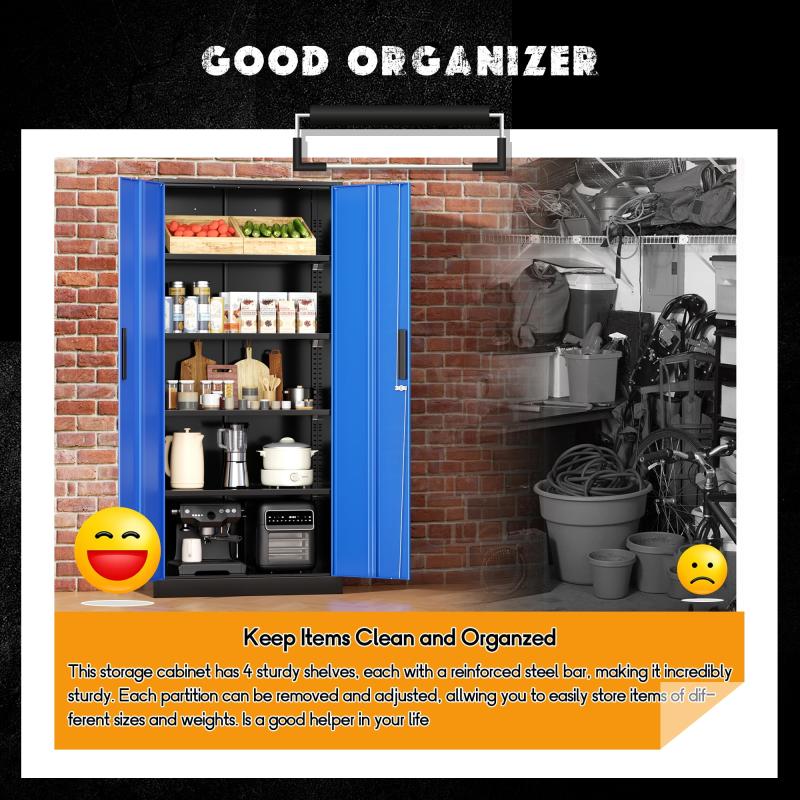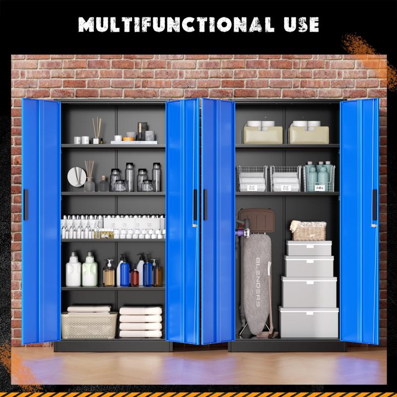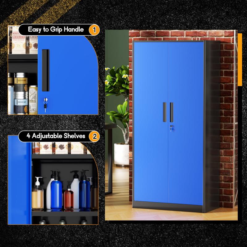 SOLAURA Metal Storage Cabinet, 71" Garage Storage Cabinet with Lock, Black Blue Metal Cabinet with 2 Doors and 4 Adjustable Shelves for Home Office, File, Easy Assemble