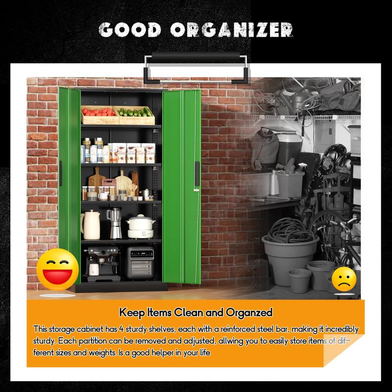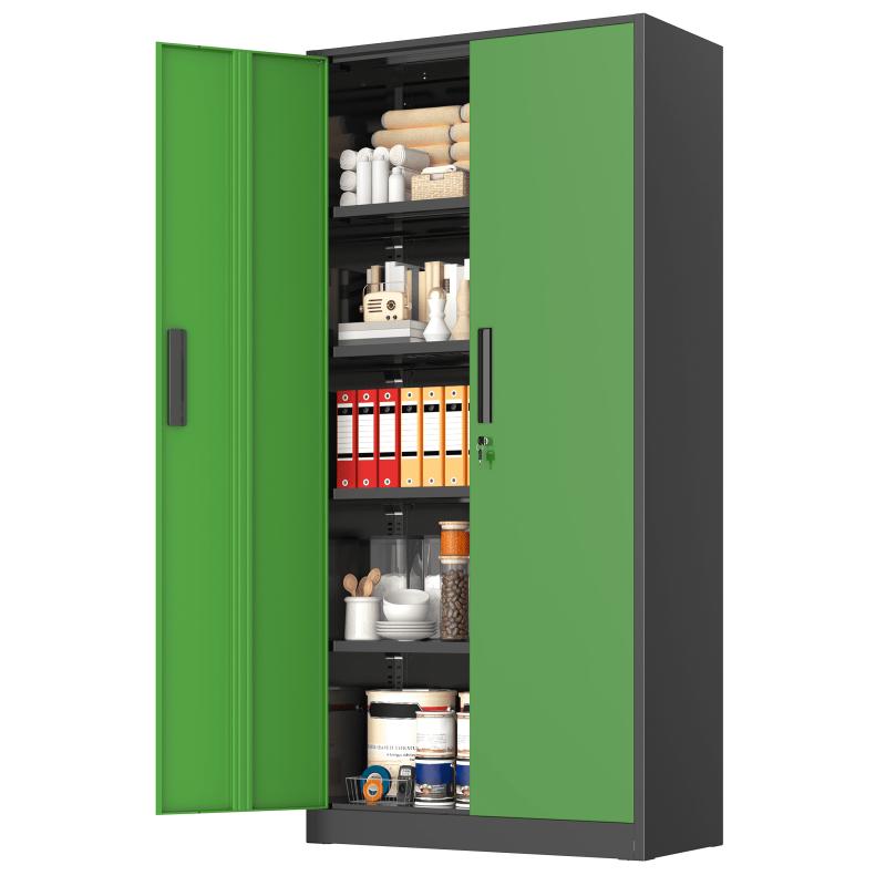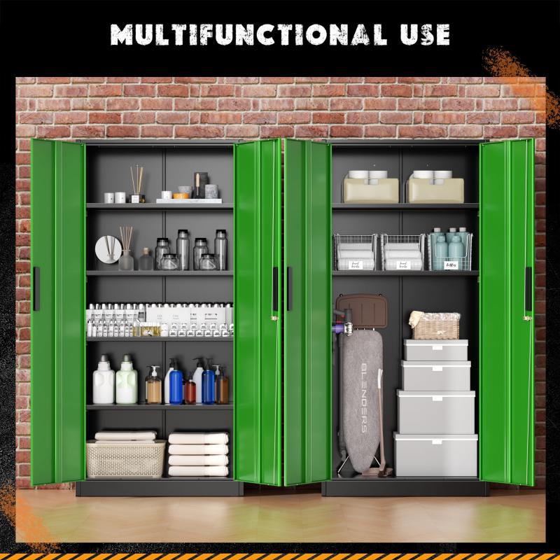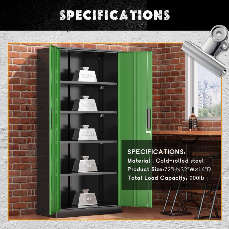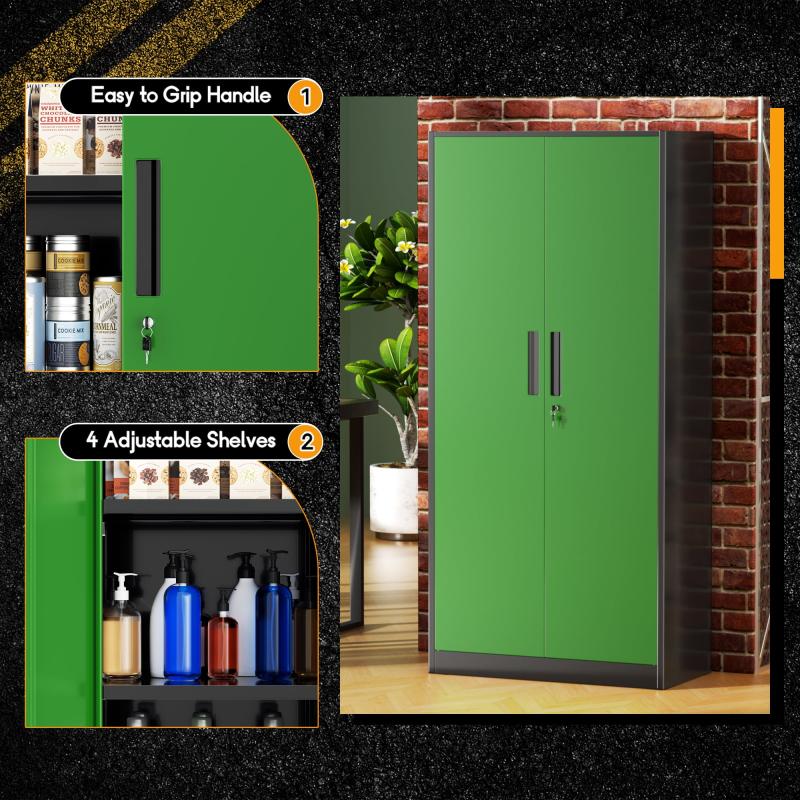 - 【Spacious Storage Solution】: The upgraded, oversized metal file cabinet measures 71 X 32 X 16 inches, catering to most storage requirements. This lockable steel garage cabinet features two doors and comes equipped with four adjustable shelves, allowing you to accommodate items of various sizes as needed. Moreover, each shelf of this metal office cabinet can support up to 180lbs, providing ample space and strength for your storage needs.